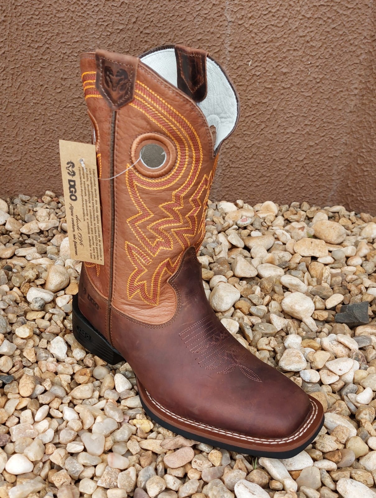 • Bico quadrado e tradicional bordado country na parte da frente do pé, garante um visual autêntico;